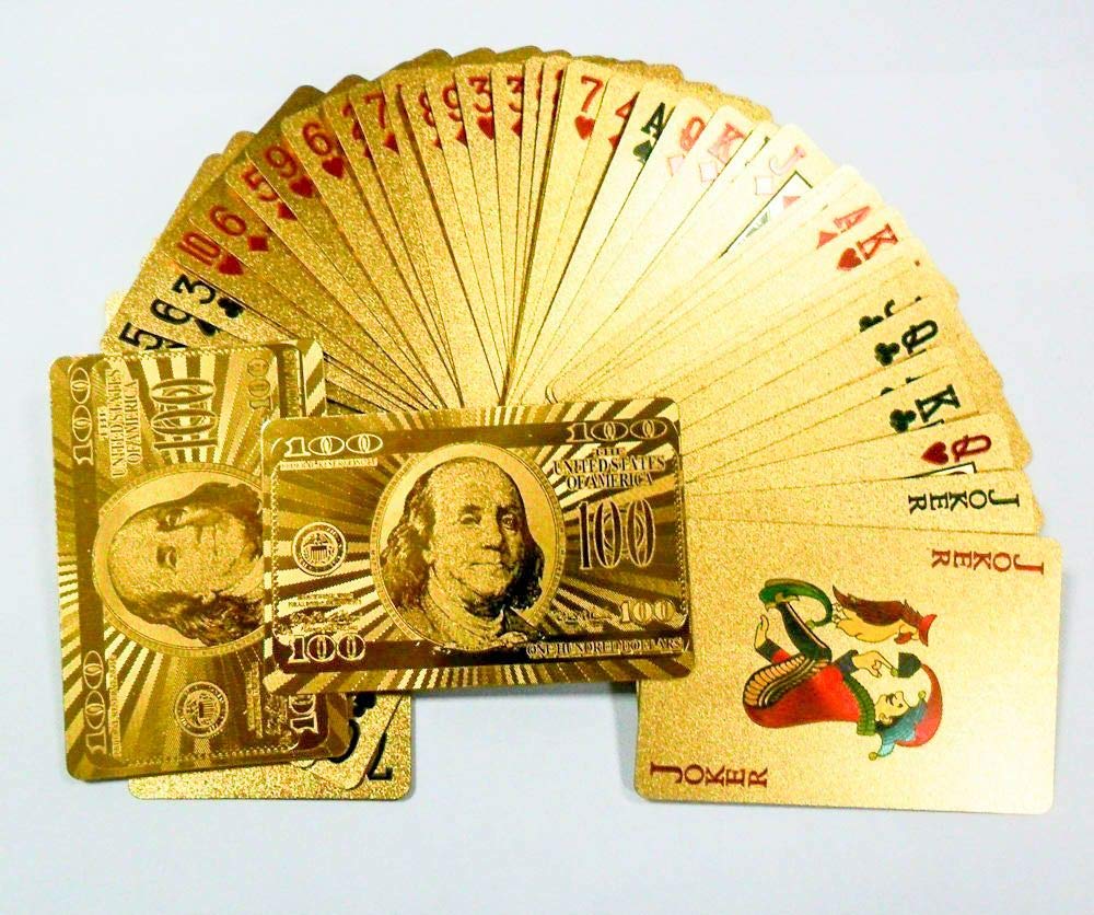 Regular Index | Bridge Size: 2.25 x 3.5 inch | 54 Card Deck | 100 Dollar Design Bill on Card Back