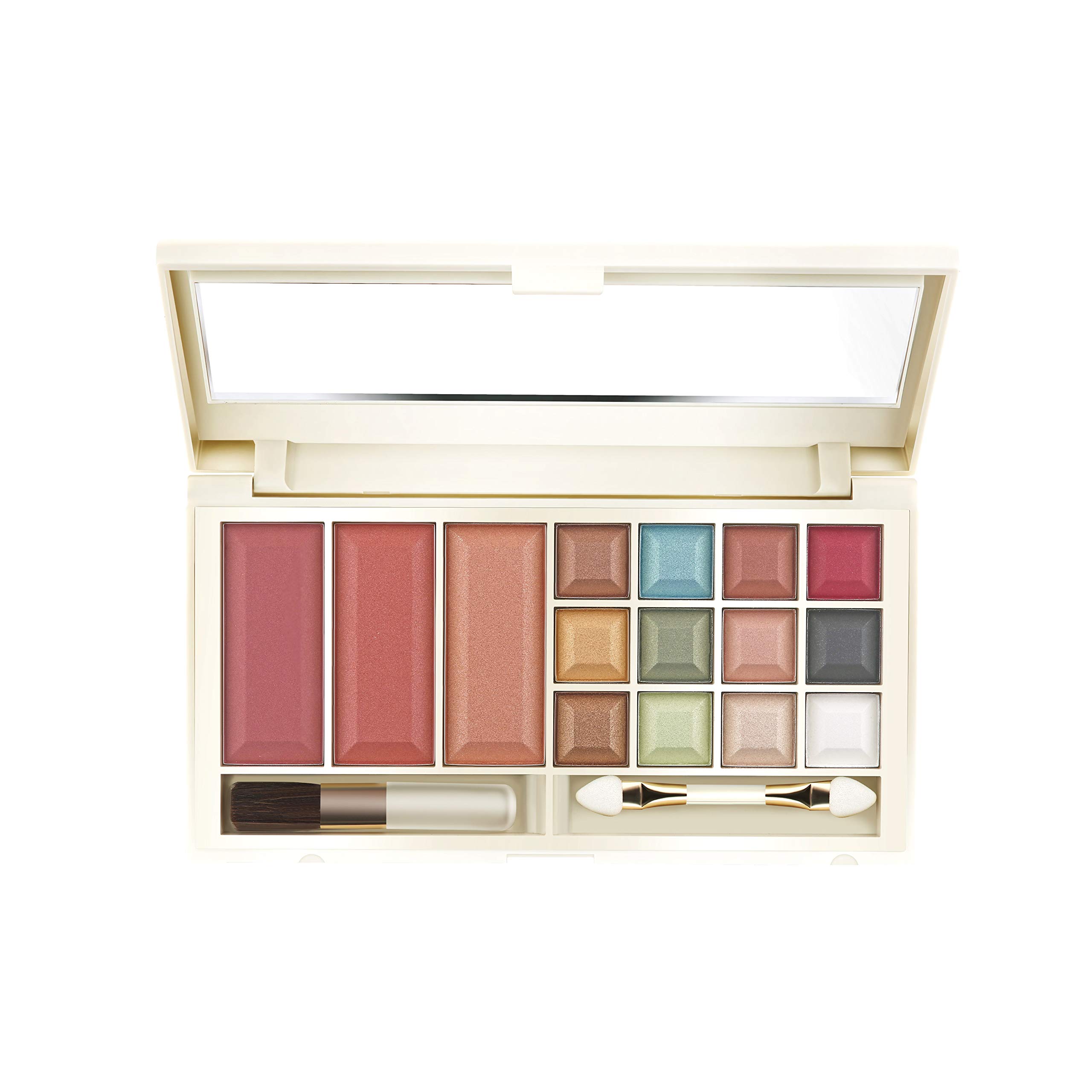 15 Eyeshadows | 6 Blushers | 6 Lip Colors | 2 Face Powders | 1 Face Shiner | 1 Foundation Cream | 1 Mascara | 1 Eye Pencil